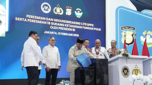 Hal tersebut Prabowo sampaikan dalam acara Peresmian dan Groundbreaking 1.179 SPPG serta Peresmian 18 Gudang Ketahanan Pangan Polri yang berlangsung di SPPG Polri Palmerah, Jakarta, Jumat (13/2/2026).